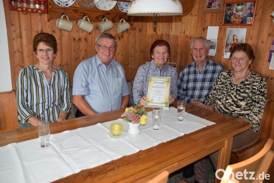Seit 40 Jahren verbringen Karin und Roland Luchs ihren Urlaub bei der Familie Pilhofer in Wildenhof in der Marktgemeinde Königstein. "Es ist für uns wie ein zweites Zuhause", erklärt Karin Luchs. Den Tipp gaben einst ihre Eltern, die auch schon hierher kamen. Mindestens einmal, manchmal auch zweimal im Jahr fährt sie mit ihrem Mann für zwei Wochen nach Wildenhof. "Wir sind hier nicht mehr Gäste, sondern Freunde", beschreibt Roland Luchs seine Gefühle. Das Ehepaar, das im aktuellen Urlaub seinen 54. Hochzeitstag gefeiert hat, stammt aus Duisburg. Besonders gefallen ihnen die Ruhe und die herrliche Natur. Hans Koch, der Vorsitzende des Tourismusvereins, und Geschäftsführerin Heidi Ziegler übergaben eine Urkunde und dankten für die Treue zum Markt Königstein und zur Familie Pilhofer.
