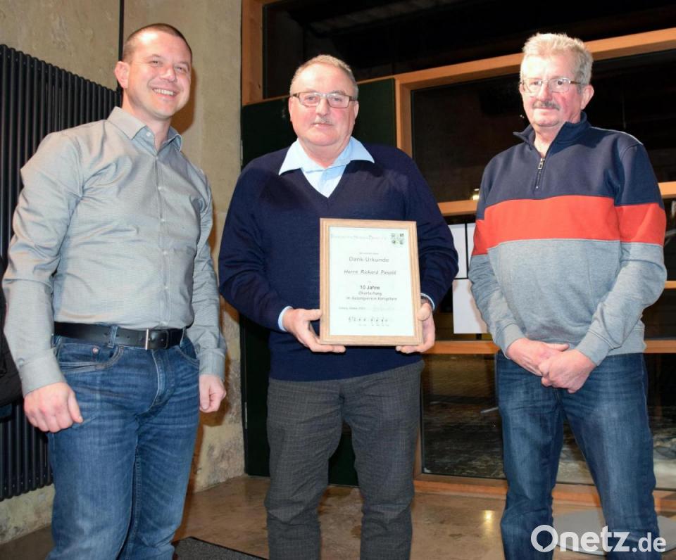 Bürgermeister Jörk Kaduk wünschte den Sängern und Sängerinnen, "dass Sie trotz Krieg und Naturkatastrophen nicht die Freude am Leben und am Singen verlieren". Darum bemüht sich auch Richard Pesold, der seit zehn Jahren den Chor leitet. Helmut Knahn übergab ihm zum Dank für seine ehrenamtliche Arbeit als Dirigent eine Urkunde vom Fränkischen Sängerbund und ein Geschenk. Anschließend gab es Ständchen für Georg Blendinger und Helmut Knahn zu ihren halbrunden Geburtstagen.
