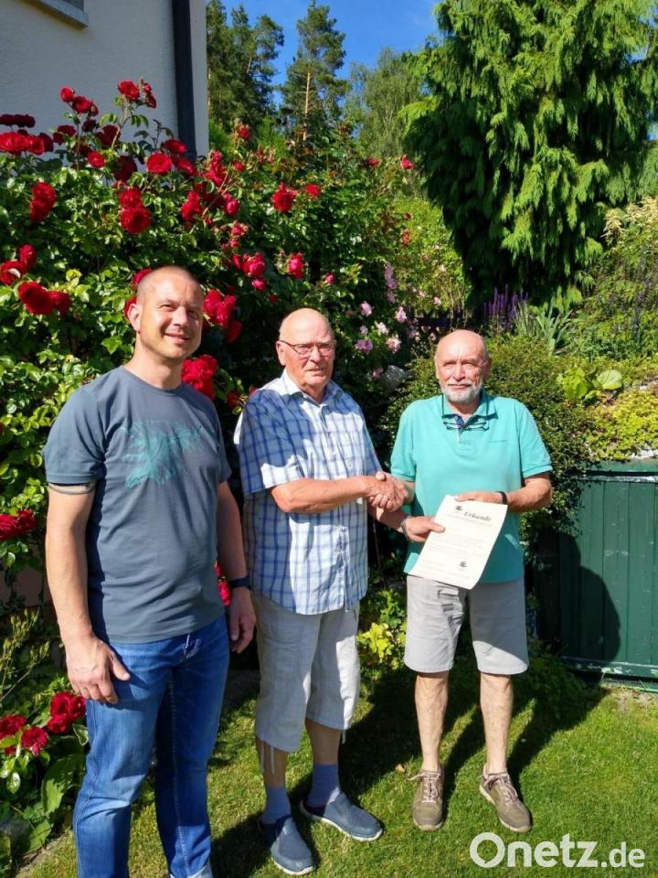 Seit vielen Jahren baut Horst Leib Vogelnistkästen, die überall an den Königsteiner Wanderwegen zu sehen sind. Über 1000 Exemplare dieser Nisthilfen hat er schon angefertigt. Für Gerhard Horn, Vorsitzender des Landesverbands für Vogelschutz (LBV) Neukirchen, war dies Grund genug, sich bei Horst Leib zu bedanken und ihm eine Urkunde zu überreichen.