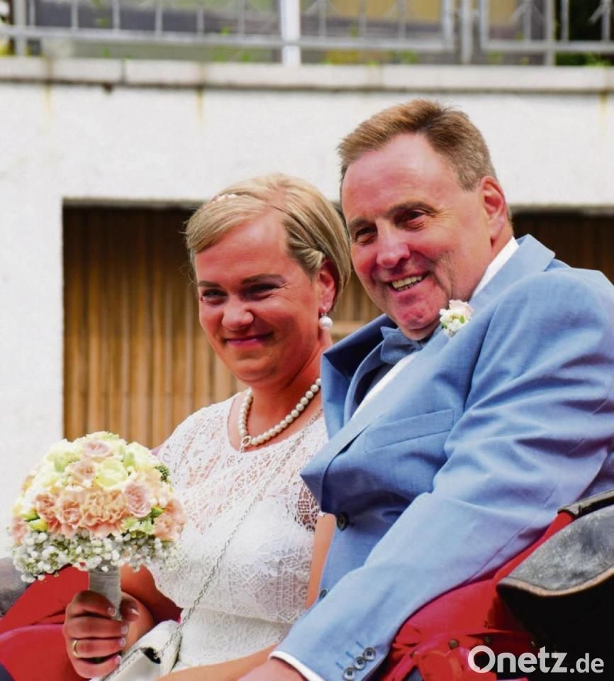 Sie haben sich getraut: Nach zehn Jahren Beziehung schlossen Jana Husemann und Horst Gebhard den Bund fürs Leben. Mit der Pferdekutsche fuhren sie zum Steinstadel, in dem der Sicherheitsabstand der Hochzeitsgesellschaft eingehalten werden konnte. Dort wurde das Brautpaar von Standesbeamtin Edeltraud Pirner getraut. Der Bräutigam arbeitet bei der Firma Eckart in Güntersthal, die Braut ist in einer Druckerei tätig. Die Arbeitskollegen empfingen die Frischvermählten nach der Trauung auf dem Rathausplatz, ließen sie eine Aufgabe absolvieren und übergaben ein Geschenk.