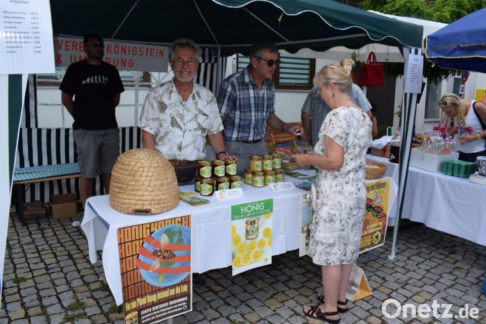 Zahlreiche lokale Spezialitäten und Handwerksprodukte breiteten die Händler auf dem Marktplatz vor den Besuchern aus. Die Königsteiner Kräuterexpertin Markusine Guthjahr zeigte einheimische Kräuter und deren Verwendung. Sie demonstrierte den Zuschauern, wie sie eine Ringelblumensalbe selbst herstellen können. Johanna Spaethe führte die alte Kunst des Spinnens vor und erklärte das Handwerk des Färbens. Das sollte eine Erinnerung daran sein, dass der Markt Königstein einst viele Färbereien und Webereien besaß.