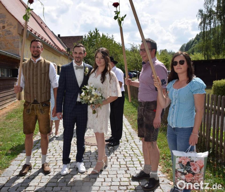Den Bund der Ehe schlossen Marvin Gebhard und Theresa Mühlberger. Am Tag ihrer standesamtlichen Trauung im Steinstadel in Königstein waren sie genau zehn Jahre zusammen. Der Bräutigam stammt aus Königstein und ist Vorarbeiter in der Qualitätssicherung bei der Firma Kurz in Sulzbach-Rosenberg. Dort arbeitet auch seine Braut Theresa Mühlberger, eine Sulzbach-Rosenbergerin, als Angestellte in der Planung. Für die Standesbeamte Karin Hiltel war es die erste Trauung, die sie vollzog. Draußen warteten Kollegen des Brautpaars mit einem Spalier und einem Geschenk. Danach ging es zur weltlichen Feier auf die Burg Hartenstein.