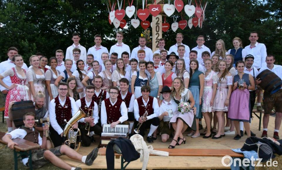 23 Kirwapaare tanzten heuer in Königstein den Kirwabaum auf dem Sportplatz aus. Die Band "In oiner Dur" begleitete das Austanzen. Die Herzen aus Holz mit den Namen der Kirwapaare fertigten die Mitarbeiter des DO-Hauses an, Sarah Maier bemalte sie. Zwei Sträuße gingen herum. Als der Wecker klingelte, hatten Lena Engelhardt mit Michael Eichenseer sowie Lea Taubmann und Jakob Guttenberger je einen Blumenstrauß. Bei letzterem Paar war im Strauß ein Zettel mit "Gratulation" zu lesen. So war die Sache klar, dass sie zum Oberkirwapaar 2022 gekürt wurden. Sie lösten das Oberkirwapaar 2021 Selina Bär und Simon Schröck ab. Anschließend wurde zünftig gefeiert.