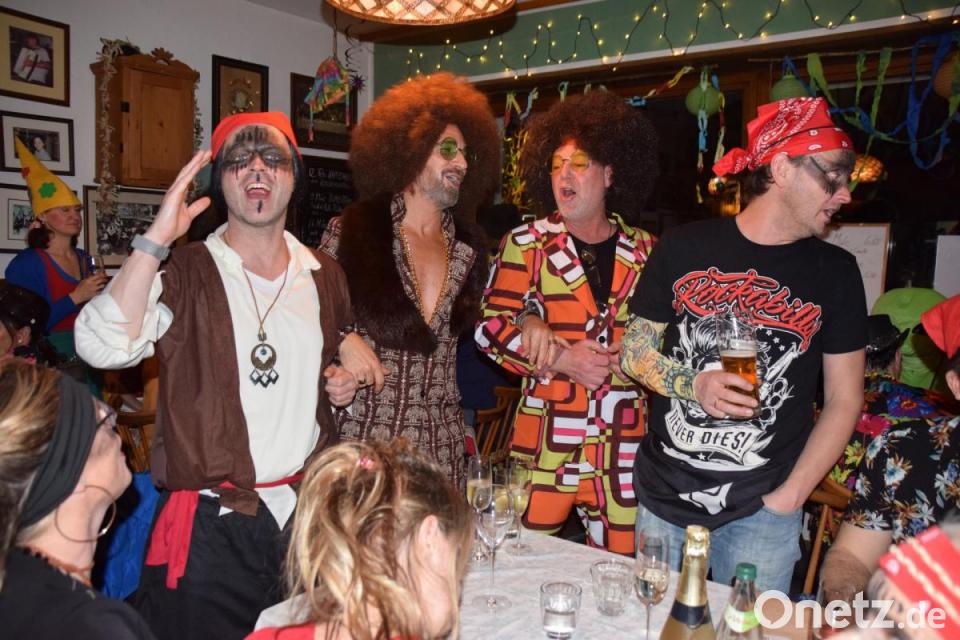 Der Kappenabend im Gasthof Zum Hirschen war heuer die einzige öffentliche Faschingsfeier in Königstein. Bewusst möchte Wirtin Ursula Domaischel diesen alten Brauch, den schon ihre Großmutter in der Faschingszeit pflegte, weiterführen. Dafür kamen Jung und Alt entweder mit Hüten oder auch in tollen Kostümen. Die zwei Hippies Andreas und Carsten wurden wegen ihrer bunten Anzüge aus den 1970er Jahren, ihren glitzernden Plateauschuhen und den goldenen Halsketten bewundert. Gruppen von Gartenzwergen, Piraten und Putzfrauen waren ebenfalls vertreten. Zum Schluss kam noch der Außerirdische E.T., der lange Rätsel aufgab, bis er seine Identität als Bärbel enthüllte. DJ Lothar legte Platten auf und heizte die Stimmung an. Bei den Polonaisen, die bis auf den Marktplatz gingen, sangen alle begeistert mit.