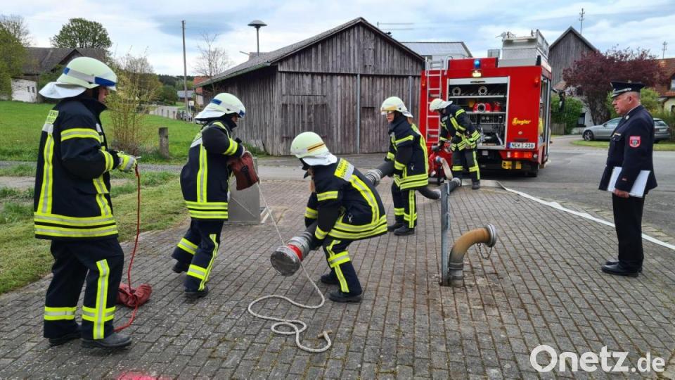 1972 trat die Damenlöschgruppe als erste im damals neugegründeten Landkreis Neustadt/WN zur Leistungsprüfung in Altentreswitz an, erinnerte der Kommandant. Im selben Jahr wurde das 85-jährige Gründungsfest der Wehr gefeiert. Danach war nur mehr eine Frauengruppe im Jahr 1995 aktiv bei der Feuerwehr dabei. Seither ist viel Zeit vergangen und nun ist erneut eine engagierte Gruppe am Werk. Nach der Knotenkunde stand auch der Aufbau eines Löschangriffs als Prüfungsaufgabe an. Andreas Sax und Ludwig Höning bereiteten ihre Probanden aber bestens auf diesen Test vor. Die Prüfer, Kreisbrandmeister Christian Demleitner (Tännesberg), Harald Dirnberger (Michldorf) und Dieter Malzer (Waldthurn) achteten ganz genau auf die exakten Abläufe unter Zeitdruck. Schließlich konnte allen Prüflingen gratuliert werden.