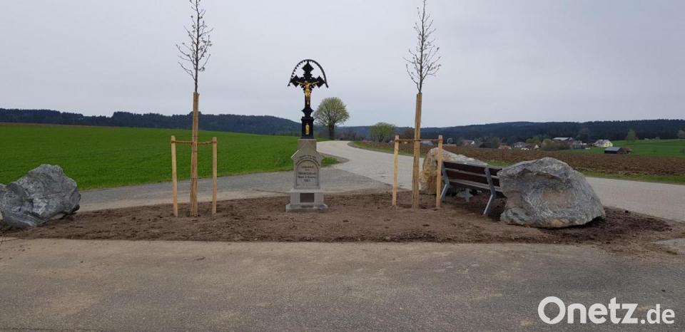 Das markante Flurdenkmal zwischen Vohenstrauß und Böhmischbruck, direkt an der Abzweigung nach Kößing gelegen, flankieren seit einigen Tagen zwei neue Bäume. Nachdem die Vorgänger trotz mehrmaligem fachgerechten Rückschnitt nicht mehr gedeihen wollten und vertrockneten, entschlossen sich die Besitzer, an selber Stelle neue Bäume zu pflanzen.