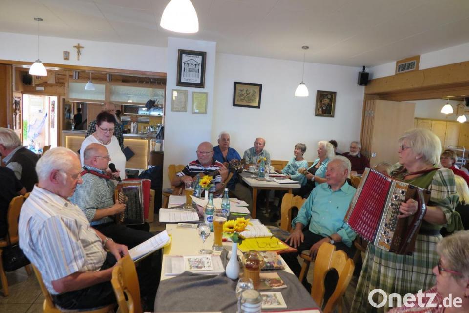 Als Akkordeonspieler Werner Matt "Junge, die Welt ist schön", "Wochenend und Sonnenschein" anstimmte, spielten und sangen spontan einige Musikanten mit. Herbert Diesner erfreute die Zuhörer auf der Gitarre mit "I bin an Vaddan sei Bou". Wen er bei "Mei Schatzerl hob i so gern" meinte, hat er aber nicht verraten. "Eine Herde weißer Schafe" und andere bekannte Stücke hatte Manfred Döllinger aus Neunkirchen mitgebracht. Beim Improvisieren merkte man, dass er auch moderne Rhythmen aus der Unterhaltungsmusik "drauf" hat.