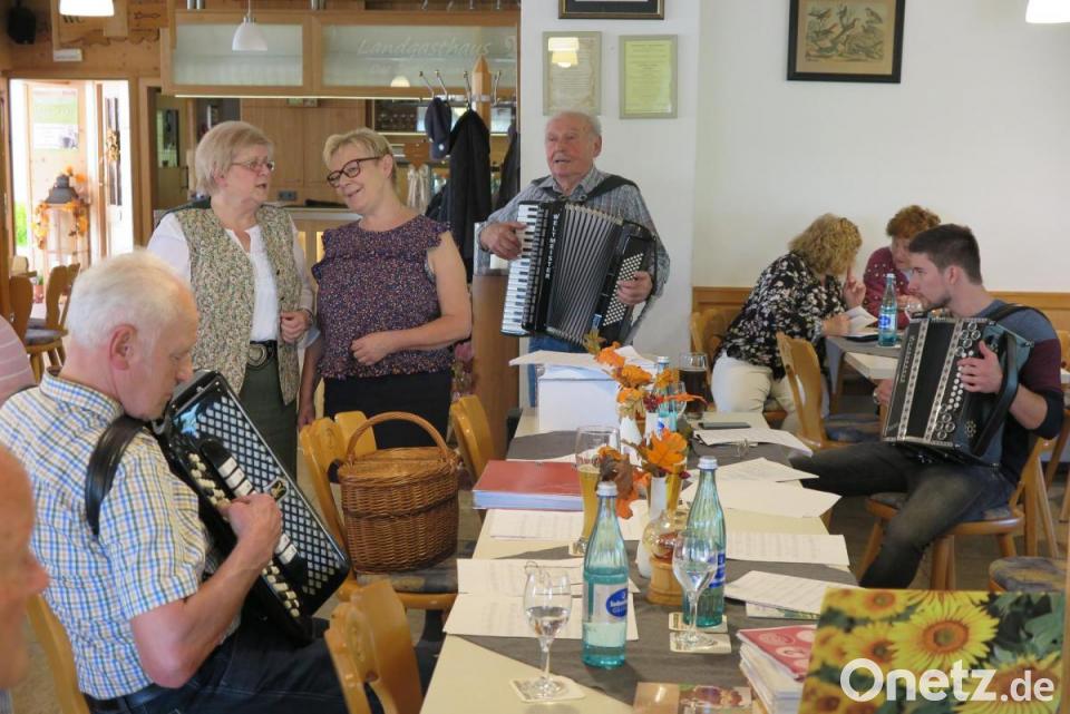 Die Volksmusikanten, die die Anfahrt auf sich genommen hatten, hatten einen Vorteil, denn sie kamen öfter dran. Auch die Liste der Wunschlieder wie "Beim Kronenwirt, da ist heut Jubel und Tanz" oder "Es blies ein Jäger wohl in sein Horn" war diesen Nachmittag länger als sonst. In bewährter Manier übernahm Rudolf Fink die Begleitung mit seiner Steirischen Harmonika.