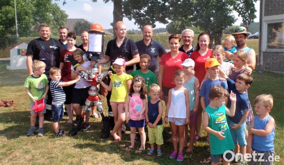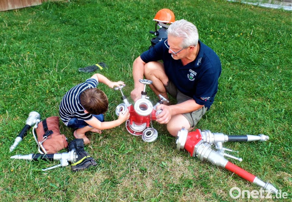Schon vom weitem fiel „Sam“, das neue Maskottchen, am Eingang Feuerwehrhauses ins Auge. Junge Floriansjünger hatten ihn fantasievoll mit Ausrüstungsteilen zum „Blechkameraden“ zusammengebaut und in Einsatzstiefel gesteckt. Mit breitem Lachen auf seinem Papiergesicht begrüßte er die Teilnehmer des Ferienprogramm-Nachmittags. 30 Kinder und viele Erwachsene hatten am Platz neben dem Feuerwehrhaus Riesenspaß. FW-Vorsitzender Hermann Prechtl, die Kommandanten Josef Fischer und Matthias List sorgten mit einem guten Dutzend Floriansjüngern und -jüngerinnen für tolle Spielmöglichkeiten. Heiß begehrt waren bei den Kindern natürlich die Fahrten im neuen Feuerwehrauto. Dazu Hausbrand-Löschen, Wasserschlauch-Fußball, Minigolf mit Strahlrohr statt Schläger, Wasserfontänen-Slalom und natürlich gegenseitiges Nassspritzen waren die Hits des Nachmittags. Bei heißem Sonnenschein wirkte die feuchte Kleidung sogar erfrischend. Wer es gerne kühler mochte, konnte im Einsatzraum bunte Bilder malen.