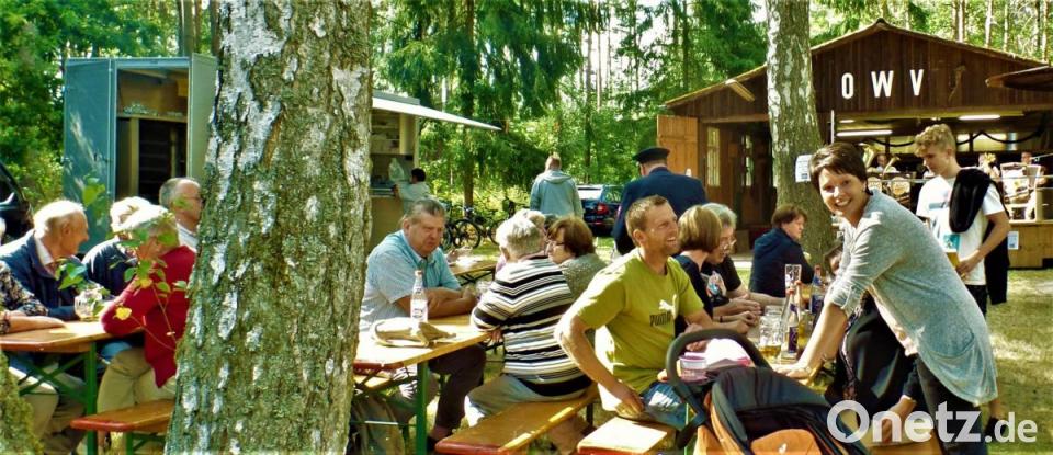 Schon bald nach dem Zwölfuhrläuten waren bei Braten und Co. die Pfannen vorübergehend leer. Die gute Nachricht, der Nachschub rückte sofort an. Bei Haxen und Hendln gab es auch fast keinen Engpass. Und das Weißwurstfrühstück unter lichten Bäumen hatte davor bereits etliche Besucher auf ein genussvolles Waldfest eingestellt. Der große Rasenplatz vor der OWV-Hütte füllte sich schnell und die vorsichtshalber aufgestellten Zelte wurden bis in den Abend hinein gerne genutzt. Der Himmel bescherte fast ideales Bierzeltwetter, ganz ohne die schweißtreibenden Temperaturen der letzten Wochen.