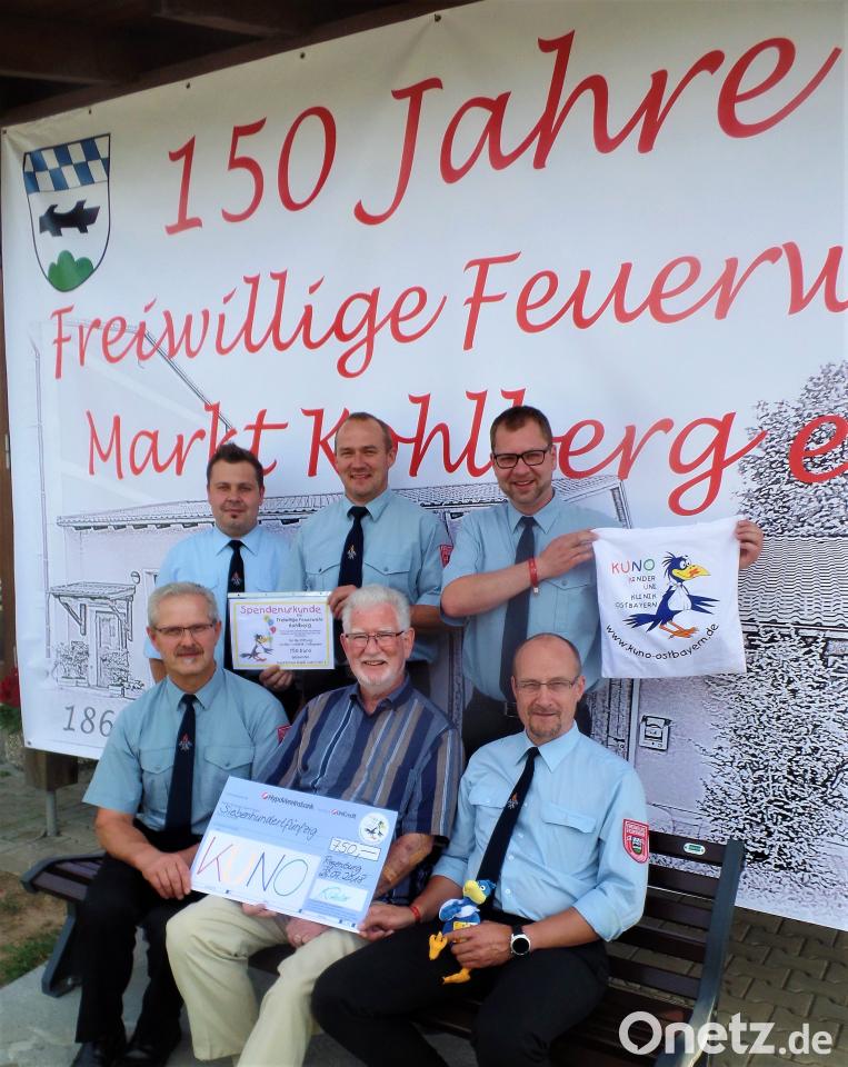 (jml) Zu den vier bekannten Aufgabenbereichen der Feuerwehren Retten, Bergen, Löschen und Schützen haben die Kohlberger Floriansjünger aus Dankbarkeit für die gelungenen Aktivitäten dieses Jahres noch ein weiteres Motto hinzugefügt: Spenden. Und das machen sie sehr gerne, wie die Vorsitzenden Hermann Prechtl und Andreas Fischer versichern. Zusammen mit den Kommandanten Josef Fischer und Matthias List fassten sie den Beschluss, statt eines kleinen Erinnerungsgeschenks an die 75 beim Festzug beteiligten Nachbarwehren und Vereine, eine Spende über 750 Euro an die Regensburger Kinder-Universitätsklinik Ostbayern (Kuno) zu geben. Auch die Teilnehmer der ökumenischen Andacht am Festsonntag haben mit ihrer Kollekte von über 600 Euro Gutes getan. Die Feuerwehrführung hat den Betrag an die Notfall-Seelsorge überwiesen.