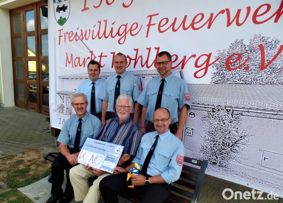 Hans Brockard, der Stiftungsvorstand der Kuno-Klinik hat den Betrag nun am Kohlberger Feuerwehrhaus symbolisch von Prechtl in Empfang genommen. Ausführlich führte er dabei vor Augen, wie sehr die Stiftung auf solche Zuwendungen angewiesen ist. „Feuerwehren sind mit ihren Jubiläen unsere Hauptsponsoren“, lobte Brockard. Auch deshalb platzierten die Floriansjünger den vom Stiftungsvorstand mitgebrachten Stoffraben zum Eingewöhnen gleich auf das Armaturenbrett des neuen Löschfahrzeugs.