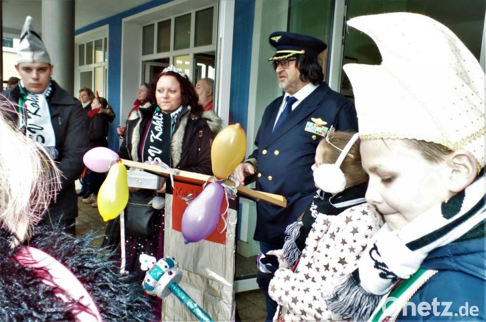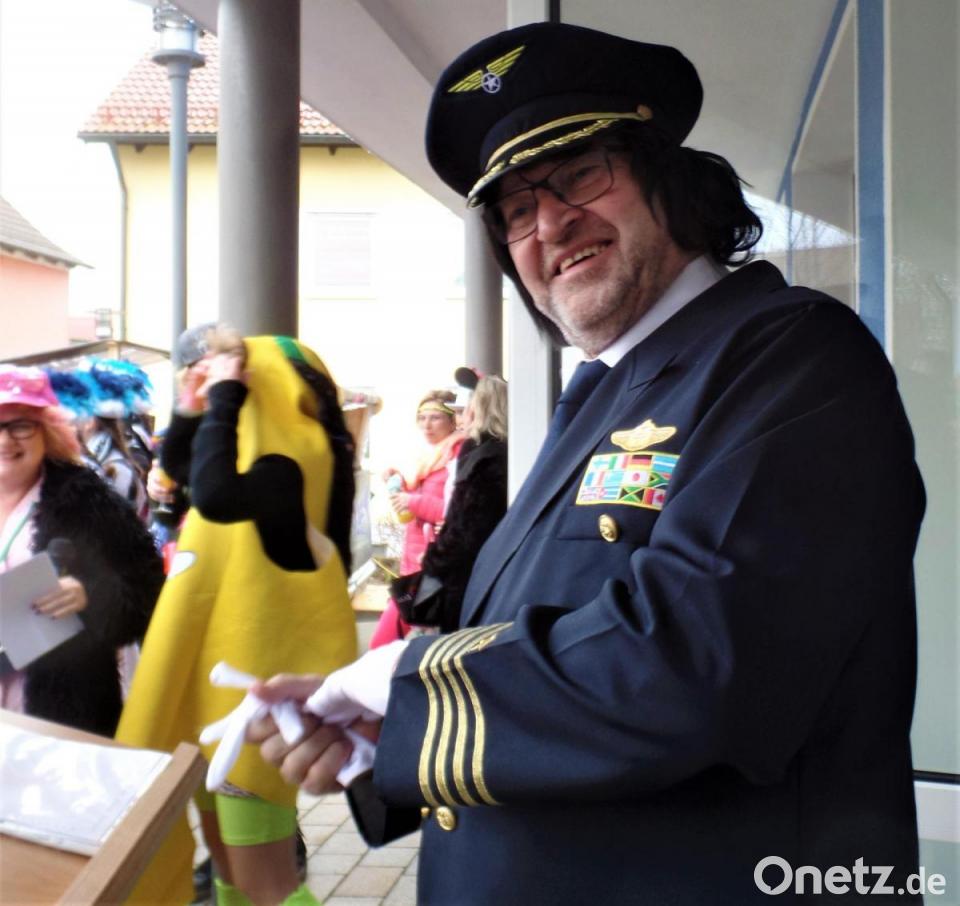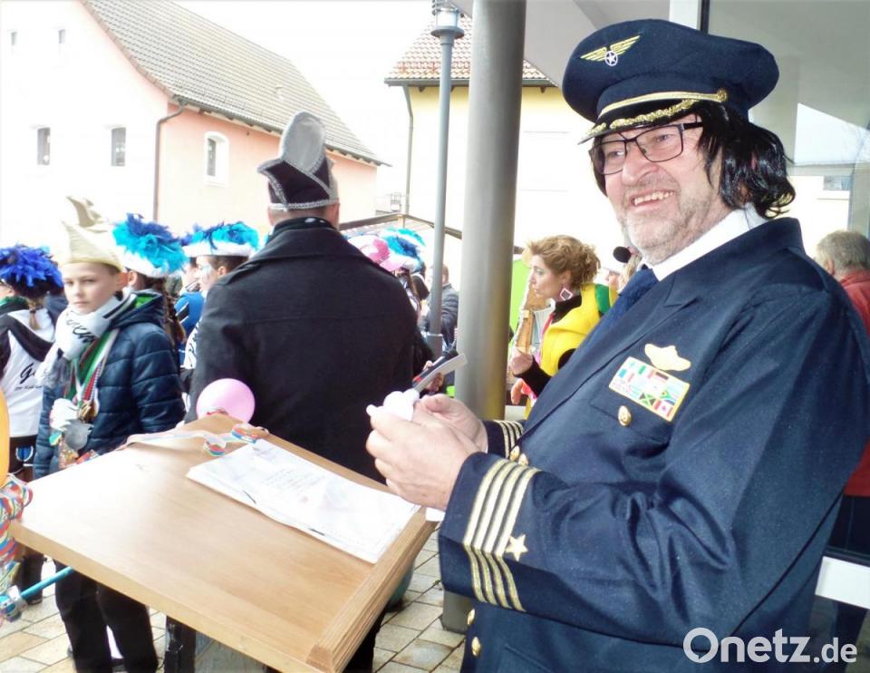 Etliche Fußgruppen und Faschingswägen hatten natürlich auch andere Themen im Visier, was die gut hundert Zuschauer ebenso freute, wie die bunten Kostüme der Gardemädchen. Nur gut, dass der anfängliche Nieselregen aufhörte und die Reden am Rathaus ohne nasse Störung verliefen. Das Prinzenpaar gab erleichtert die Gemeindekasse an Bürgermeister Rudolf Götz zurück. Diesmal sogar mit 100 Prozent Überschuss, wie sie behaupteten. Auch den Rathausschlüssel bekam das Oberhaupt zurück, weil der ja sowieso nur dort passe und nicht in ein altes Schulhaus. Götz will nach der Amtsübergabe Ende April auf Ferienflieger-Pilot umsatteln. Die Uniform dafür besitzt er bereits, ebenso eine Copilotin.