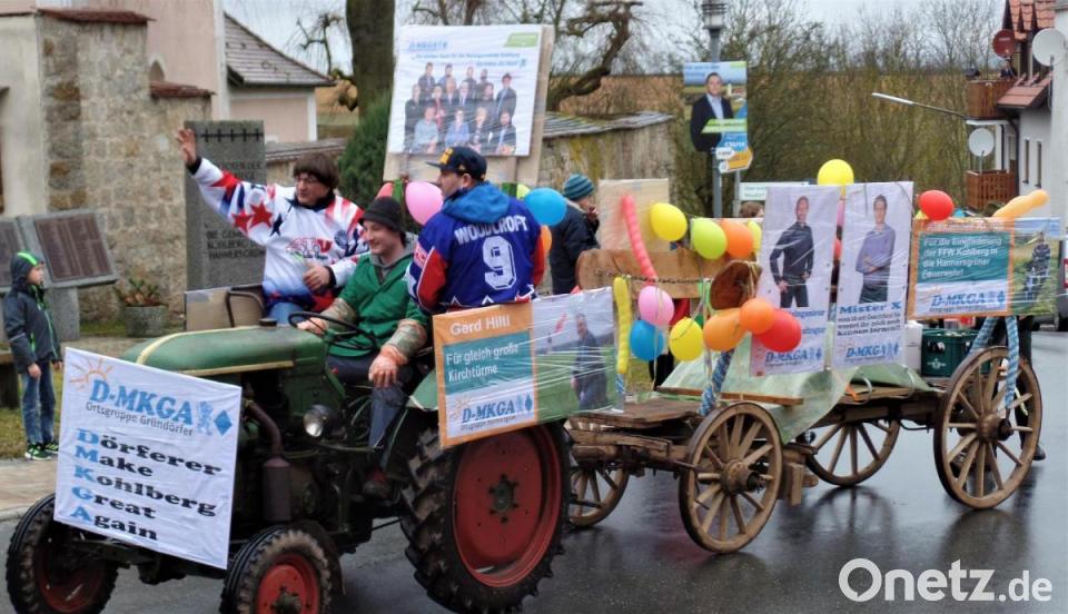 „Wir Narren ziehn uns jetzt zurück, Politiker sucht ihr euer Glück.“ Faschingsprinz Tobias I. brachte am Rathaus auf den Punkt, was diesmal den Kohlberger Gaudiwurm und die Reden dominierte. Nämlich die Bürgermeister- und Marktratswahl in wenigen Wochen. Da gab es so originelle Gespanne wie den PS-schwachen Traktor mit angehängtem antiken Leiterwagen der Hannersgrüner Freien Wähler samt Seitenhieb zur Eingliederung der Kohlberger in die Dörferer Feuerwehr. Oder den vorgezogenen Maibaum der CSU, weil man dem „neuen Besen“ im Rathaus viel Tatkraft und Mut wünscht. Unbeantwortet blieb die Frage, ob es ihm daran mangelt.