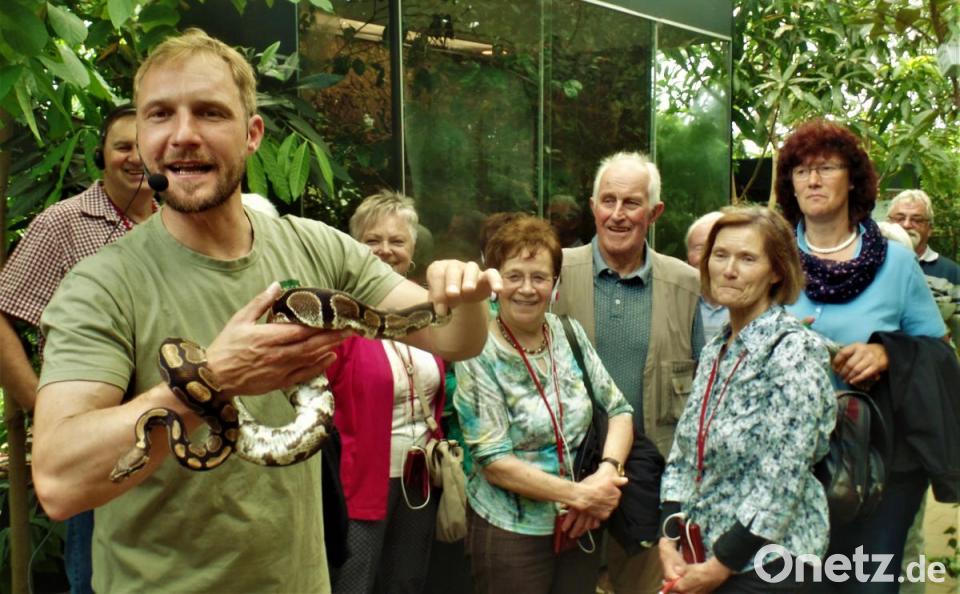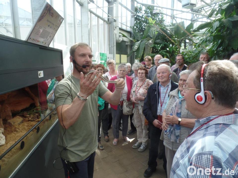 Ein junger Zoologe informiert über Entstehung, Zweck, Forschungsrichtung und touristische Bedeutung der 3500 Quadratmeter umfassenden zwei Glashäuser. Er holt Sandvipern, Würgeschlangen und einen großen Tausendfüßler aus den Terrarien und verspricht, dass in Tettau bald auch Krokodile einziehen werden.