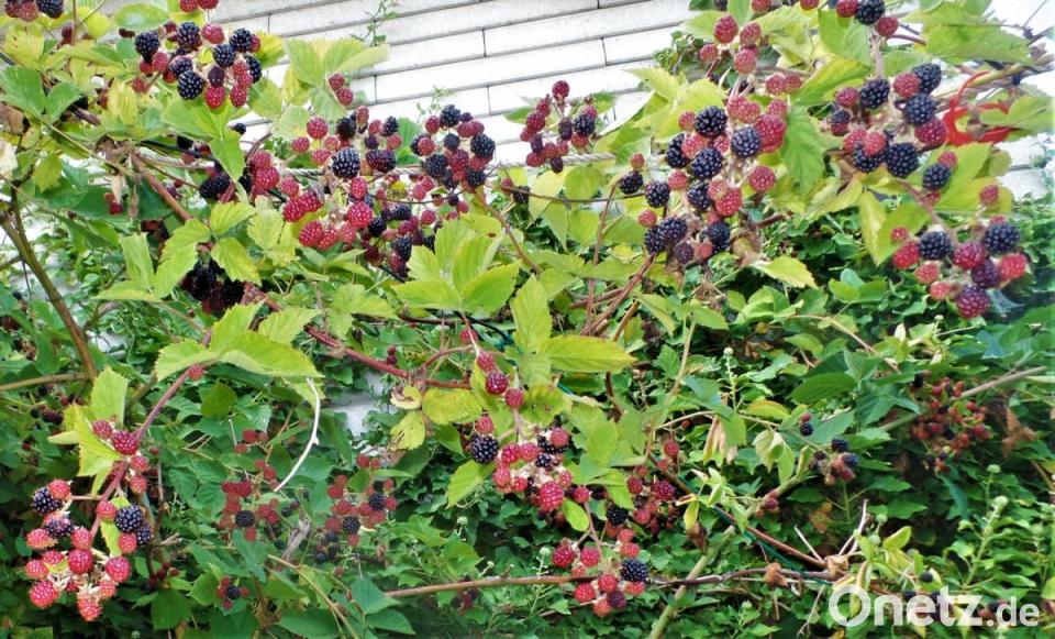 Boysenbeeren gehören botanisch zur Familie der Rosengewächse, sind also gar keine echten Beeren. Die Früchte sind sogenannte Sammelsteinfrüchte. Einige Zuchtformen sind stachellos. Die Beere braucht ein eher mildes Klima zum Wachsen. Angebaut wird sie daher hauptsächlich an der Westküste Amerikas und in Neuseeland. Sie fühlt sich im Halbschatten am wohlsten. Die Früchte punkten mit ihrem Gehalt an Vitamin C, Mineralstoffen, vor allem Kalzium, Eisen und Ballaststoffen. Sie eignen sich als Kuchenbelag oder zur Herstellung von Marmelade und Gelee. Eingerührt in Joghurt oder Quark schmecken sie ebenfalls gut. Am Besten jedoch frisch und saftig direkt vom Strauch gepflückt. Natürlich wissen das auch viele Insekten, die sich jetzt fleißig an der Saftbar bedienen.