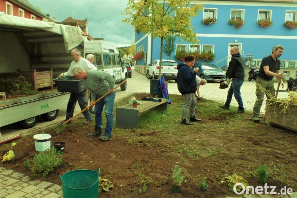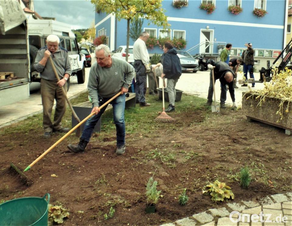 Die Pflanzaktion war nicht nur sinnvoll, sondern hat den Beteiligten auch Spaß gemacht und ein kleines Areal im Marktkern deutlich verschönert. Die Rede ist vom Umfeld des Kriegerdenkmals an der evangelischen Kirche. „So, wie es da aussieht, das ist doch unter aller Kanone. Da muss man doch was machen“, hatte sich vor kurzem noch Rita Frieser als Mitglied der Reservistenkameradschaft bei einem Standort-Appell der KRK geäußert. „Das muss unbedingt schöner werden“, bestimmte sie resolut. Bernhard Faltenbacher und Reinhard Welzl, die Vorsitzenden der Krieger- und Reservisten, waren für ihre Idee sofort Feuer und Flamme. Wie bei der Bundeswehr üblich, beschlossen sie auch hier: „Wer einen guten Vorschlag hat, darf ihn sofort ausführen.“ Damit war der Vereinswirtin gleich das Kommando über die samstägliche Pflanzaktion übertragen. Eine Aufgabe, die sie zur vollen Zufriedenheit der Beteiligten erledigte.