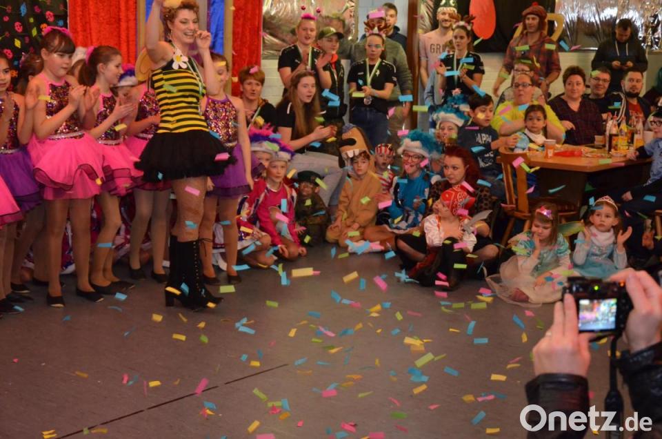 Bevor das Kinderprinzenpaar mit seiner Gefolgschaft weiter nach Neudorf zog, begeisterten die Jugend-, Kinder- und Minigarde die kleinen Gäste mit ihren Tanzküsten bei zwei Gardemärschen und einem Showtanz. Anschließend wurde für eine der Tänzerinnen eine Konfettikanone auf der Bühne abgeschossen, sie feierte ihren zenhnten Geburtstag. Den Erfolg der Veranstaltung sah Vorsitzender Thomas Knöbel an den strahlenden Gesichtern der Kinder.