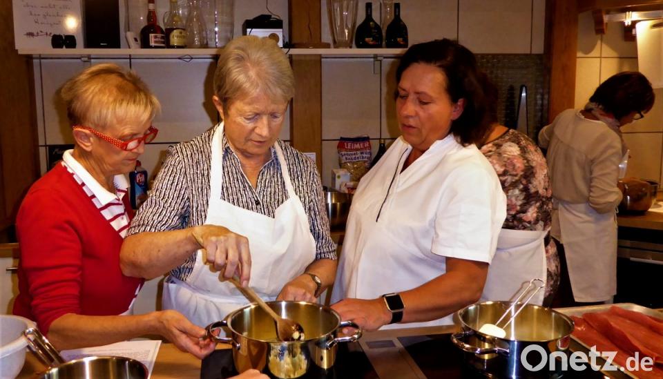 Es hatten sich so viele Interessenten gemeldet, dass Kursleiterin Rita Frieser die Gruppe sogar auf zwei Termine aufteilte. Sonst hätten nicht alle gleichzeitig mitarbeiten können. Gemeinsam kümmerte man sich um ein komplettes Vier-Gang-Menü mit Pilzvariationen von der Vorbereitung übers Kochen bis zum Essen.