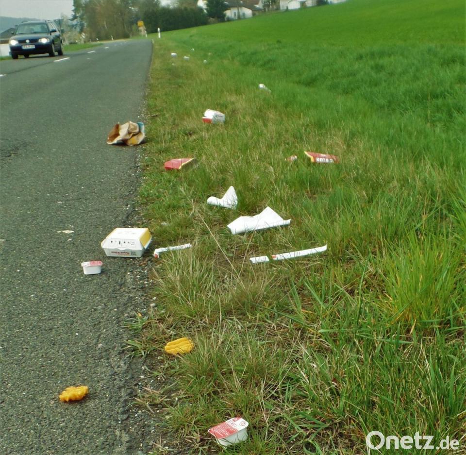 Auch im Ortsgebiet von Kohlberg, den Gründörfern und Röthenbach. Und jetzt sieht es an der Einfahrt von der Umgehungsstraße in den Ort schon wieder dreckig aus. Einer, der bei der Sammelaktion dabei war, ist darüber sehr zornig: „Mir steht das jetzt bis hier her“, sagt er und wischt sich mit der Hand über die Kehle. Wahrscheinlich war es nur ein einziger Verursacher, der hier schnell mal seinen Schnellimbiss-Müll aus dem Autofenster geworfen hat.
