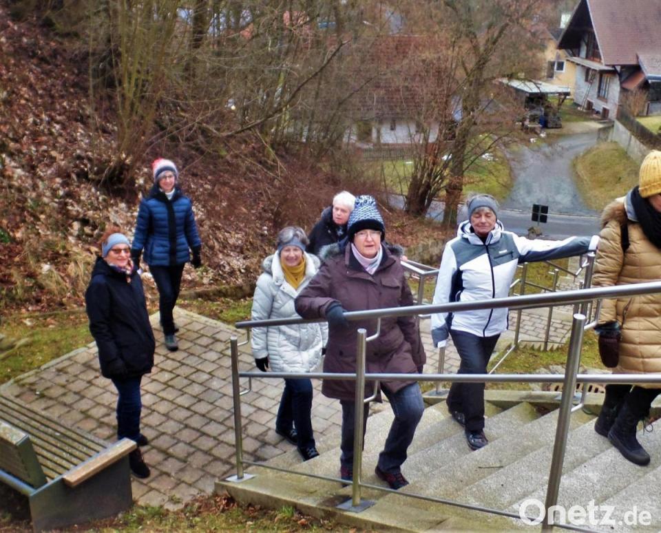 G'sundheitsbotschafterin Maria Müller von der Sega (Gesellschaft für seelische Gesundheit im Alter) führte die Kohlberger Kursteilnehmerinnen nicht über Stock und Stein, aber bergauf und bergab bei der kurzfristig angesetzten Achtsamkeitswanderung. Vom katholischen Gemeindehaus ab ging es eine Teilstrecke entlang des Bernsteinwegs, dann rauf zur Abspann-Kuppe, den Geiselberg hinunter zum Eichelbach und über die Pfarrrangen-Treppe zurück zum Ausgangspunkt.