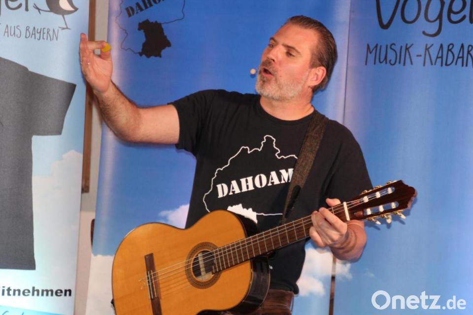 Schon der Auftakt war spektakulär: Der "Ed Sheeran aus Niederbayern", der nur an den schönsten Orten in Bayern spiele – in den Wirtshäusern – ging durch die Reihen, plauderte mit den Leuten. "Dich hab' ich schon mal gesehen", sprach der "Vogelmayer" einen Mann an, der sich aber nicht erinnern konnte. "Des is a Allerweltsg'sicht", sagte seine Frau über ihren Mann – der Saal tobte. Auch die Sprüche den Abend über sorgten für Heiterkeit. „Junggesellen vermehren sich zwar ned, aber aussterben tun's net.“