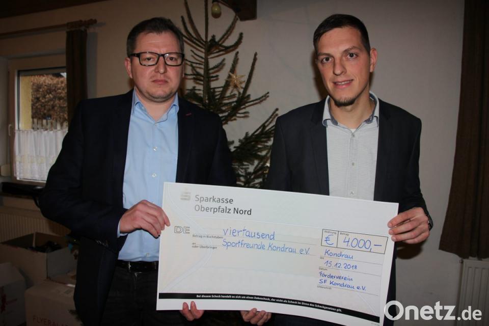 Bei all den Ehrungen wollte auch der Förderverein der Sportfreunde nicht zurückstehen. Markus Waller überreichte vom Förderverein an Manuel Enders einen Scheck in Höhe von 4000 Euro. Waller verwies darauf, dass der Förderverein die Sportfreunde mittlerweile mit über 50 000 Euro finanziell unterstützt habe. Musikalisch wurde die Weihnachtsfeier von einem Quintett der Stiftländer Jugend- und Blaskapelle umrahmt.