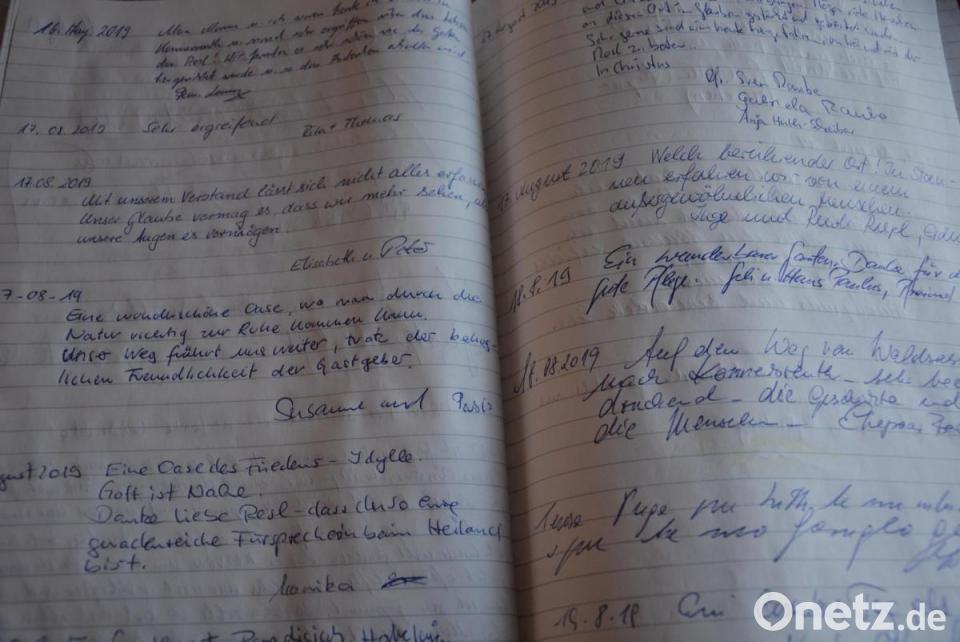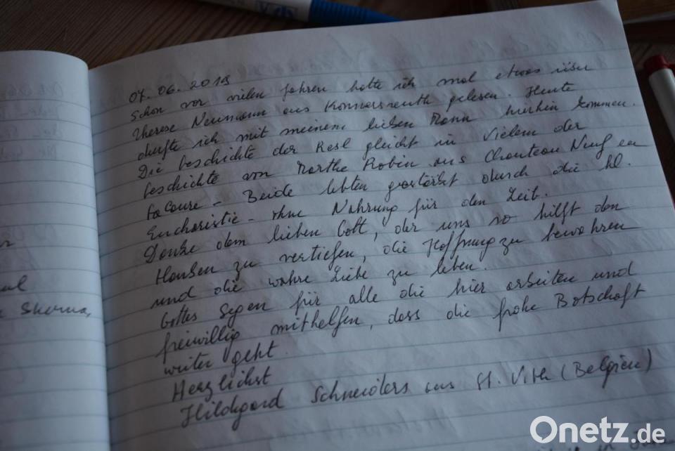 Viele der Helfer sind schon von 2006 an dabei, als der Resl-Garten als Außenstelle der Gartenschau Marktredwitz-Cheb eröffnet wurde. Sie haben mitverfolgt, wie sich die Anlage zu einer beliebten Anlaufstelle entwickelt hat. Ein Blick ins Gästebuch zeigt, dass auch schon zahlreiche Besucher aus dem Ausland hier waren. Tschechien, Österreich, Italien oder die USA etwa tauchen ebenso auf wie afrikanische Länder. Besonders kurios ist der Besuch einer Dame aus Verona in diesem Jahr: Allein für einen Aufenthalt in Konnersreuth sei sie morgens mit dem Flugzeug über Nürnberg angereist und am Abend wieder in die Heimat zurückgekehrt. Zu den prominentesten Gästen zählt der ehemalige Kölner Kardinal Joachim Meißner, der im September 2016 privat vor Ort war. Viele Besucher hinterlassen neben lobenden Worten auch ganz persönliche Wünsche und Bitten.