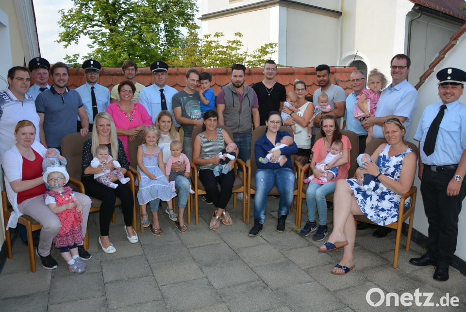 Beim Neugeborenen-Empfang gratulierte Bürgermeister Max Bindl (3. von rechts) den Eltern zum Nachwuchs. Weitere Glückwünsche gab es vom Jugendbeauftragten Wolfgang Pötzl (6. von links), der Familienbeauftragter Christa Wölfl (5. von links) und dem Konnersreuther Feuerwehrkommandanten Stefan Kreuzer (rechts).