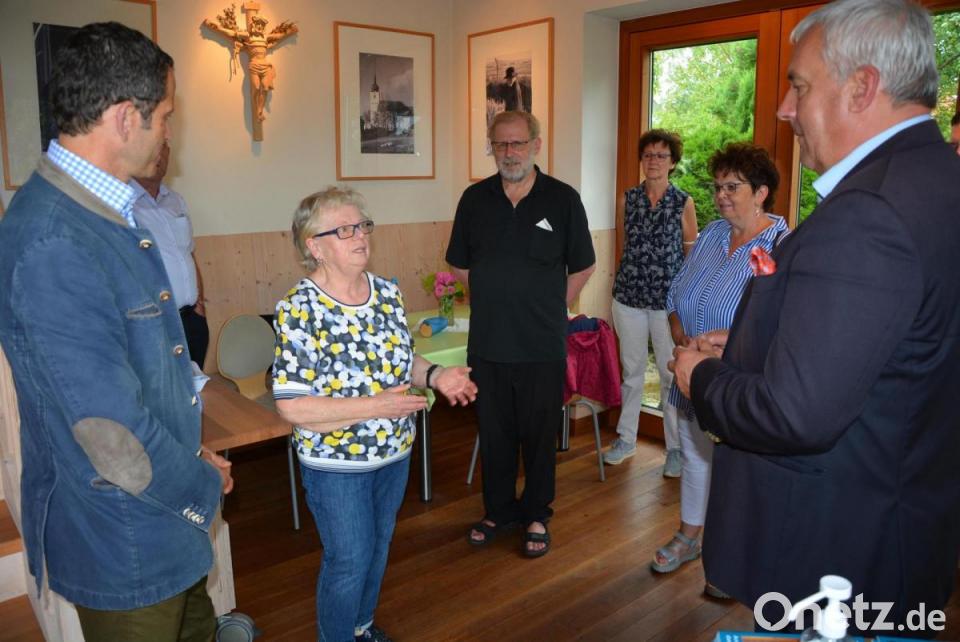 Im Infohäuschen des Resl-Gartens traf Ludwig Spaenle auch auf Zeitzeugin Bernadette Geyer, die dem Gast anschaulich ihre Erinnerungen an Theres Neumann und Besuche im Resl-Haus schilderte. Ludwig Spaenle zeigte sich stark beeindruckt und kündigte für die Zukunft auch einen Besuch im Theres-Neumann-Museum an. Uwe Rosner, Vorsitzender des Fördervereins für das Info- und Begegnungszentrum, zeigte sich sicher, dass das Museum noch heuer eröffnet werden kann.