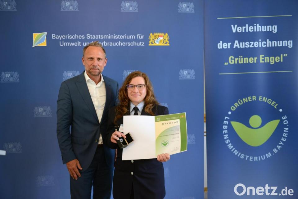 Den "Grünen Junior Engel" – bestehend aus einer Urkunde und einer Ehrennadel – nahm stellvertretend Jugendwartin Carina Hart entgegen. Mit nach Regensburg waren Jugendsprecherin Marie Hofmann sowie der Jugendbeauftragte der Gemeinde Konnersreuth, Manuel Ernst, gekommen. Ein "Grüner Engel" ging zudem an die KZ-Gedenkstätte in Flossenbürg. Dort werde gezeigt, wie man einen ehemals lebensfeindlichen Ort in einen Lebensraum umwandle, sagte Glauber bei der Preisübergabe an Gedenkstättenleiter Jörg Skriebeleit.