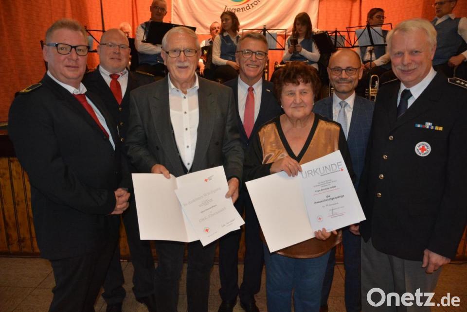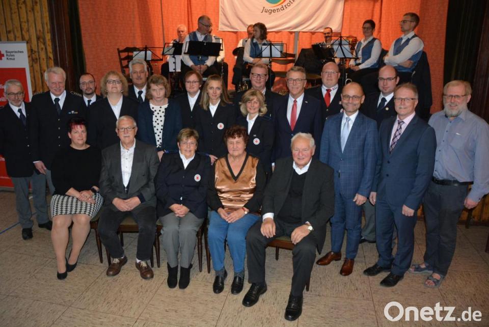 Die Ehrennadel des Bayerischen Roten Kreuzes in Gold für 40 Dienstjahre erhielten Peter Hofmann, Bruno Kraus, Dr. Peter Krömer, Hermine Schaumberger und Rita Kraus. Die DRK-Ehrennadel des Deutschen Roten Kreuzes mit Urkunde von Präsidentin Dr. Gerda Hasselfeldt erhielten die Gründungsmitglieder Konrad Braun, Josef Bindl und Christa Judas.