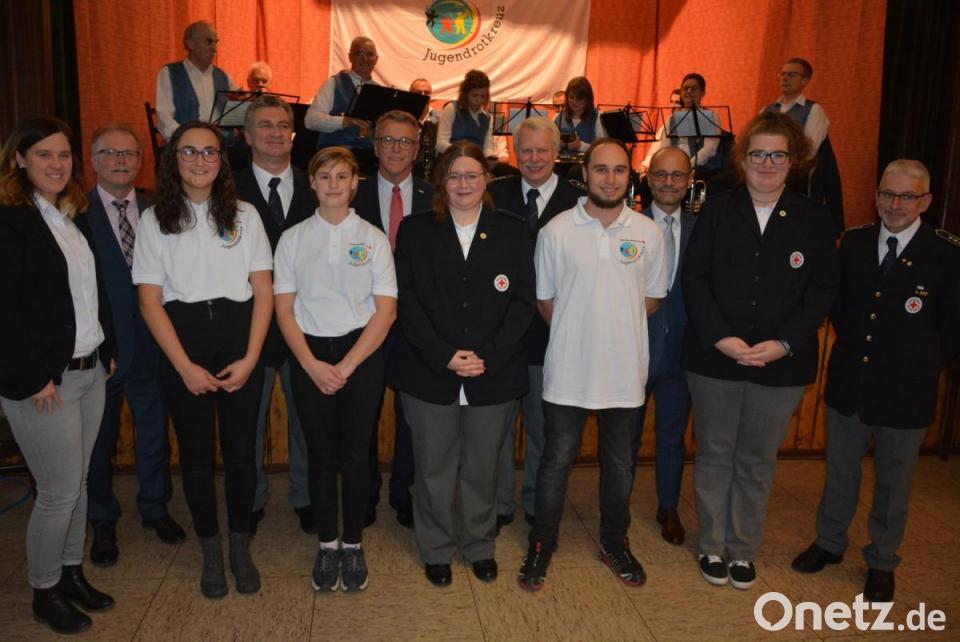 Schließlich gab es noch Jahresspangen für das Jugendrotkreuz. Seit fünf Jahren aktiv dabei sind Manuel Ernst, Lisa-Marie Seitz, Isabella Seitz, Anna Sölch, Marie Hofmann, Niklas Moser und Judith Moser. Seit zehn Jahren in der Jugendgruppe tätig sind Christina Stock und Thomas Stock. Schließlich erhielten noch die "Väter" des Jugendrotkreuzes, Hugo Hofmann und Bruno Kraus, das Ehrenzeichen des Jugendrotkreuzes in Silber als Anerkennung ihrer Verdienste.