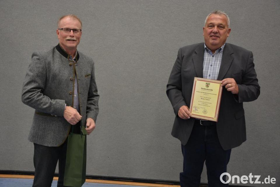 Eine Ehrung gab es zu Beginn der jüngsten Marktratssitzung für Verwaltungs-Geschäftsleiter und Kämmerer Markus Troesch: Er ist seit 40 Jahren im öffentlichen Dienst tätig. Bürgermeister Max Bindl gratulierte und überreichte eine Urkunde und ein flüssiges Präsent.