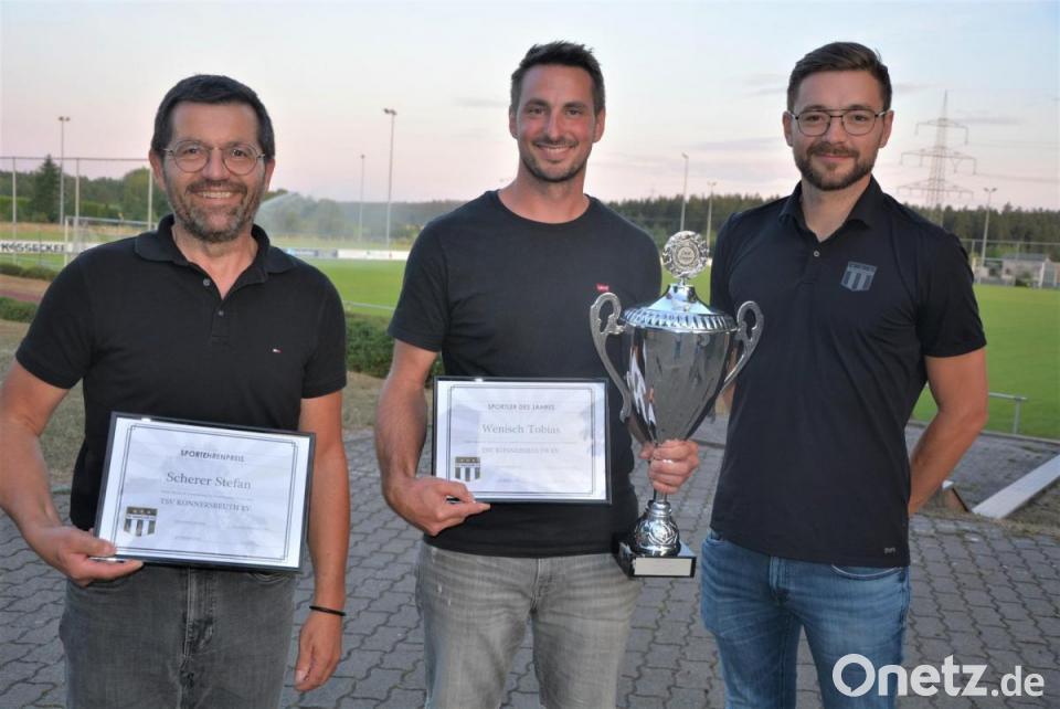 Den TSV-Ehrenpreis für jahrelanges ehrenamtliches Engagement erhielt Stefan Scherer. "Als Jugendleiter und Trainer hat er Akzente beim TSV gesetzt", betonte Maximilian Siller. Als Sportler des Jahres wurde Tobias Wenisch ausgezeichnet, der seit 36 Jahren Mitglied im TSV ist. Nach dem Einstieg bei der F-Jugend wechselte er im Juniorenbereich zur SpVgg SV Weiden, ehe er ab der A-Jugend wieder zum TSV zurückkehrte. Sportlicher Höhepunkt war der Aufstieg in die damalige Bezirksoberliga. In mehr als 500 Spielen trat er für den TSV an und war auch als Kapitän im Einsatz.