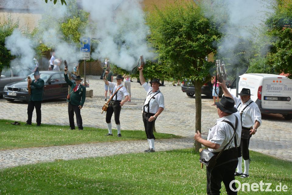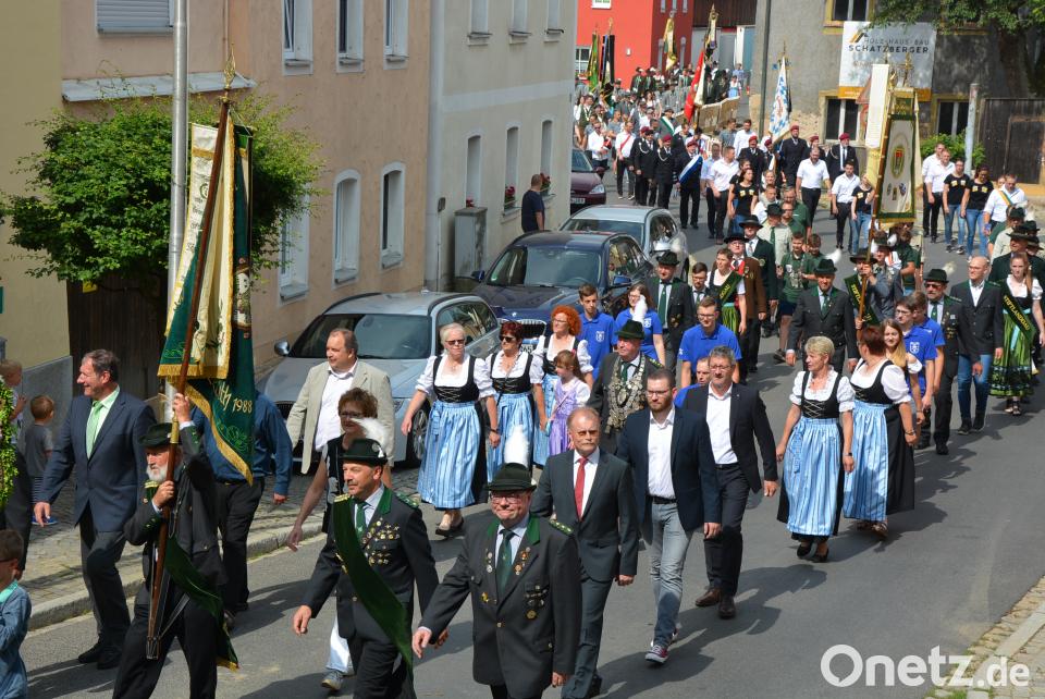 Schon der Auftakt am Samstagabend mit den "Stoaberch-Gaunern" war gut besucht. Weiter gingen die Jubiläumsfeierlichkeiten am Sonntagvormittag mit einem Festgottesdienst in der Pfarrkirche, zelebriert von Pater Benedikt Leitmayr und umrahmt vom Konnersreuther Männergesangverein unter der Leitung von Josef Rosner. Anschließend bewegte sich ein prächtiger Festzug durch die Straßen des Ortes. Insgesamt 25 Vereine aus dem Stiftland beteiligten sich daran. Auch Gauschützenmeister Manfred Zölch und Bürgermeister Max Bindl marschierten mit. Musikalisch begleitet wurde der Festzug von der Blaskapelle Konnersreuth und der Münchenreuther Bauernkapelle. Am Therese-Neumann-Platz wurden die Schützen von den Böllerschützen der Königlich privilegierten Schützengesellschaft Mitterteich lautstark erwartet. Höhepunkt des Nachmittags ist die Gaukönigsproklamation.