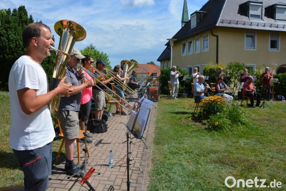 Eine große Überraschung gab es Mittwochnachmittag für die 42 Bewohner des Seniorenzentrums Theresianum: Die Zollkapelle Nürnberg mit Leiter Armin Scharnagl hatte im Garten der Einrichtung Aufstellung genommen und stellte in Form einer öffentlichen Probe ihr musikalisches Können unter Beweis. Verstärkt wurden die Mitglieder der Zollkapelle von einigen erfahrenen Musikern aus Konnersreuth.