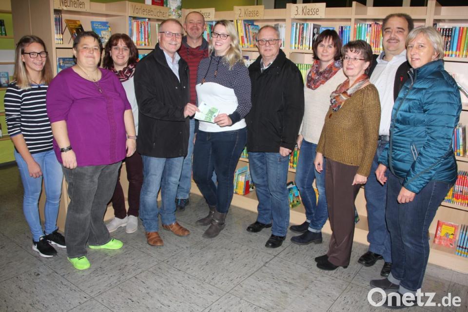 Vorsitzender Max Bindl überreichte mit einigen Vertretern der Freien Wählern, unter ihnen auch Kassierer Reinhard Ernstberger, die 200 Euro an die Bücherei-Leiterin Lisa Kopp und dem gesamten Bücherei-Team, das nahezu vollständig anwesend war. Von diesem Geld will das Bücherei-Team neue Zeitschriftenständer anschaffen.