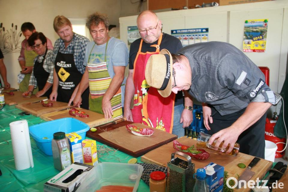 Den Genießern wurde neben passenden Weinen aus deutschen und österreichischen Lagen, ein Fischpäckchen vom Saibling, geräuchertes Fischfilet von der Zedernholz-Planke, zudem gegarte Forelle versprochen. Als quasi "Nachtisch" wird später noch ein Karpfen-Burger zubereitet. Man sollte also nicht nur das nötige Interesse, sondern auch einen großen Appetit mitbringen, wurde bereits im Vorfeld empfohlen. Danach werden die Werkzeuge in die Hand genommen und losgelegt.