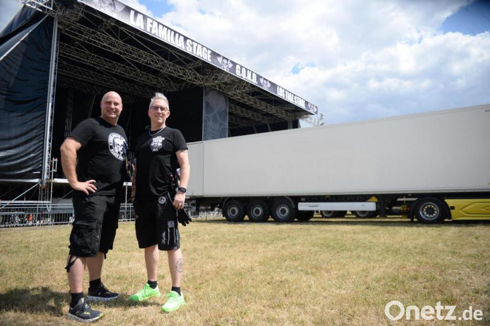 Seit Mittwoch, 0.01 Uhr, sind die Tore in Kreuth geöffnet – zur mittlerweile 15. Auflage der G.O.N.D., der Größten Onkelz Nacht Deutschlands. Nach zwei Jahren Corona-Zwangspause kann das Festival im Vilstal wieder über die Bühne gehen. Und was für eine Bühne. Da haben sich die beiden Veranstalter Timo Hofmann und Steffen Kiederer mächtig ins Zeug gelegt: „Es ist sicherlich eine der größeren Bühnen, die dieses Jahr in Bayern aufgebaut werden. Da sind wir schon mächtig stolz drauf.“ Dabei handelt es sich um eine Doppelbühne, bedeutet somit, dass die Konzerte der einzelnen Bands ohne Umbaupause aufeinander folgen können.