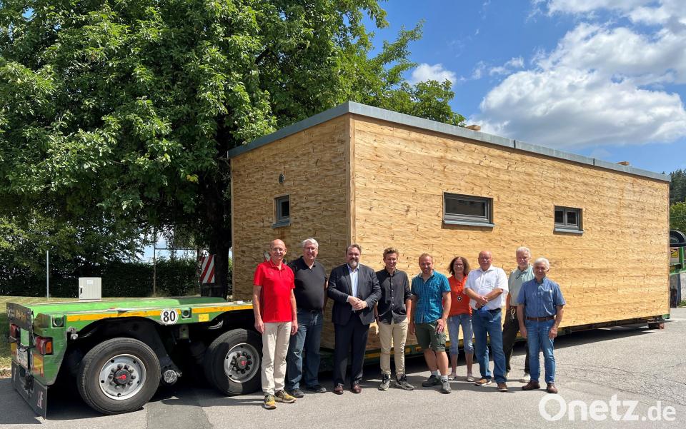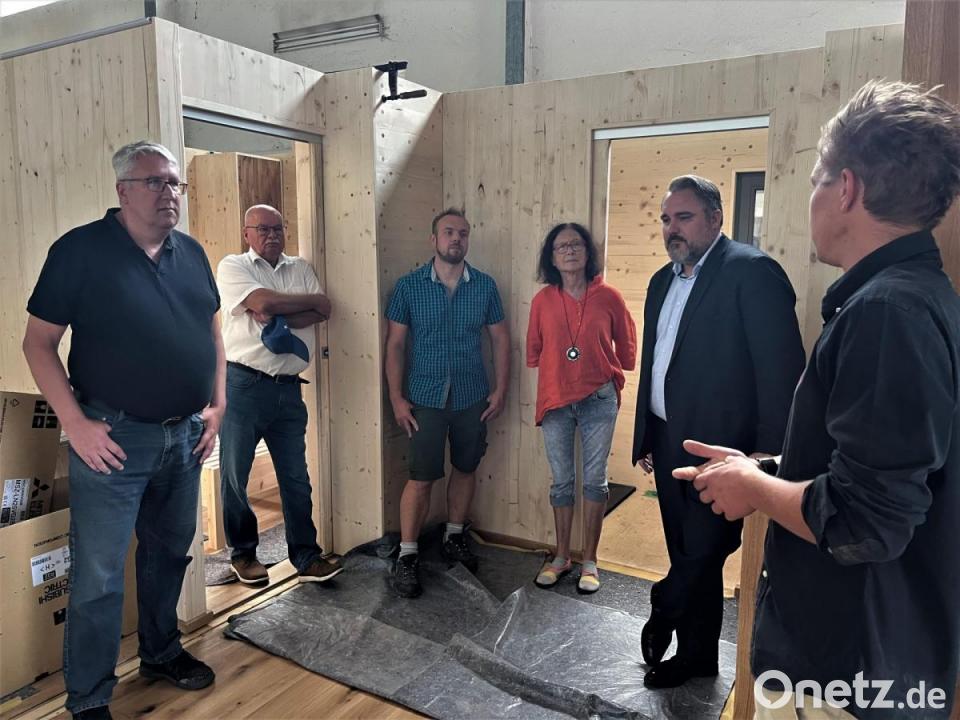 Die Besuchergruppe aus Mitgliedern des Kreistags, Stadtrats und weiteren Mitgliedern der örtlichen Liberalen, unter denen sich auch FDP-Landtagskandidat Jens Rohn aus Amberg und FDP-Ortsvorsitzender Christian Weiß befanden, konnte einen aus 4 Modulen zusammengesetzten Bungalow besichtigen.