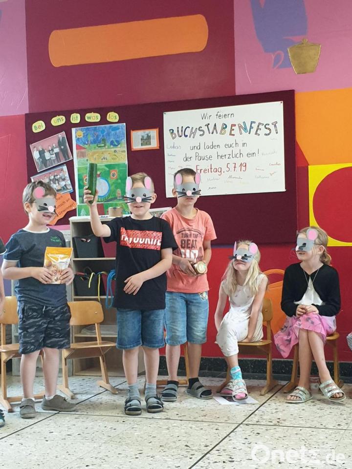 „Vorhang auf“ für „Mama Maus“ hieß es beim Buchstabenfest an der Grundschule. Mit dem Abc-Lied zog Mama-Maus mit ihren Kindern durch das Schulhaus. In der Pausenhalle warteten schon gespannt viele Eltern und die Kinder der zweiten Jahrgangsstufe, die dort ein Theaterstück aufführten. Mama Maus präsentierte darin ihre 24-köpfige Kinderschar, mit der sie ins Schulhaus eingezogen ist. Jedes der Mäusekinder stellte seine Lieblingsnascherei vor: Alexander nascht Apfelkuchen, Birgit liebt Banane, Tina isst gerne Tomaten … Im Anschluss an die Vorstellung waren die Kinder fleißig „bei der Arbeit“ an verschiedenen Buchstabenstationen und bei lustigen Buchstabenspielen. Währenddessen bereiteten die Eltern mit Hausmeisterin Tanja Höcht ein wunderbares Buchstabenbuffet zu.