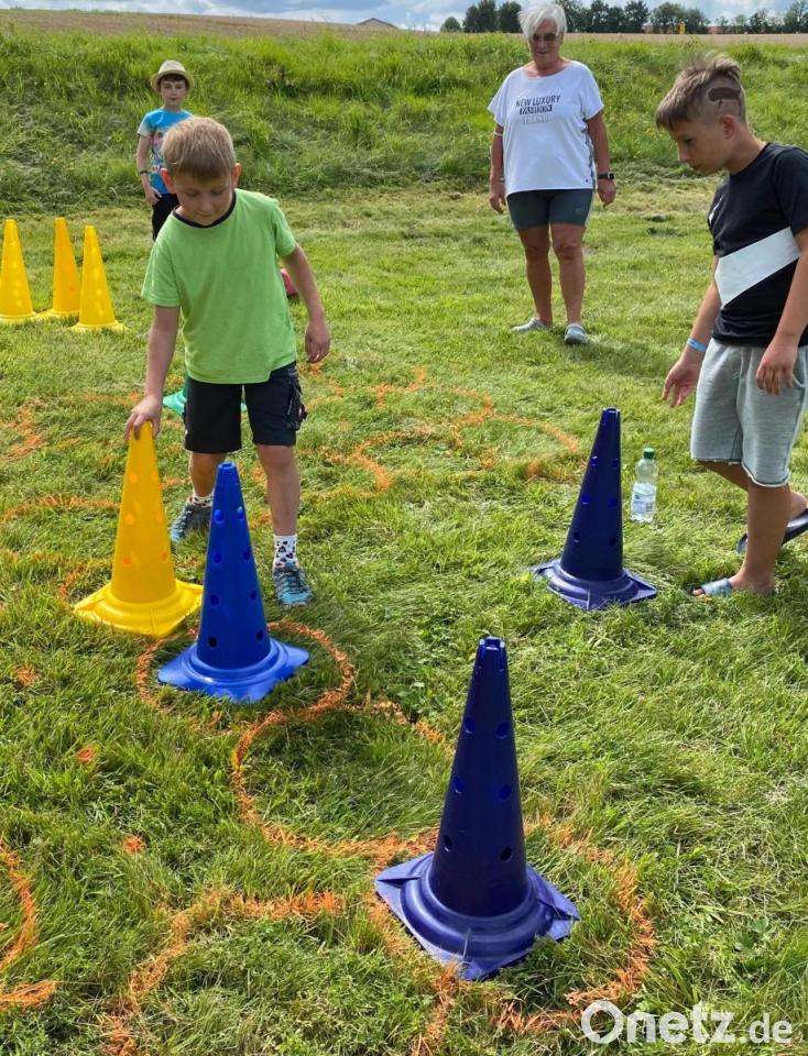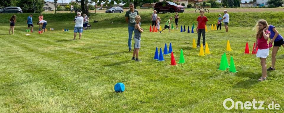 Beim Ferienprogramm in Krummennaab spielten die Kinder ein klassisches Brettspiel in XXL-Version im Freien. Auch das Wetter spielte mit und bescherte den Mädchen und Buben bei Sonnenschein und herrlichen Temperaturen einen schönen Nachmittag. Die Spieler trafen sich zu einer Partie „Mensch ärgere Dich nicht“ am Erlenweiher in Thumsenreuth. Dort hatte Jugendbeauftragter Andreas Heinz bereits auf der frisch gemähten Badewiese mit Kreidespray die Spielfelder aufgemalt. Nach einer kurzen Einweisung in die Spielregeln fiel bereits der Startpfiff. Aufgeteilt in drei Spielgruppen eiferten die Ferienkinder um ihr Würfelglück. Besonders das „Schmeißen“ steigerte im Spielverlauf die Spannung, was vor allem kurz vor dem Einlauf der Spielfigur in die Zielfelder für den Spieler sehr ärgerlich war. Dies war aber kein Grund aufzugeben und schnell wandte sich die Konzentration auf die übrigen Hütchen im Spiel. Die Camper vom Erlenweiher mussten als Schiedsrichter nur selten eingreifen und sorgten für einen harmonischen Spielbetrieb. Zur Stärkung hatten sie für die Pause belegte Semmeln und Getränke vorbereitet. Schnell verflogen die zwei Stunden und nur wenige schafften es, in dieser Zeit alle vier Spielhütchen ins Ziel zu bringen. Auch wenn am Ende nicht bei jeder Gruppe ein Sieger feststand, so bereitete dieser Klassiker in dieser besonderen Variante für Jung und Alt einen Riesenspaß.