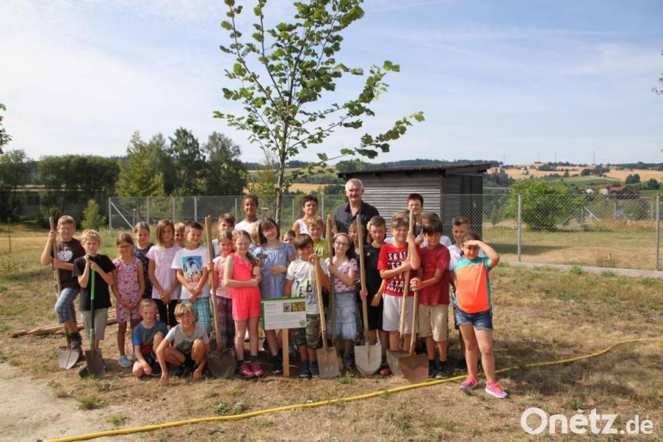 Die Mitarbeiter des Bauhofs hatten das Pflanzloch hergerichtet, einen Erdhaufen vorbereitet und Schaufeln und Spaten bereitgestellt. Im Handumdrehen waren der Baum gepflanzt, das Erdloch verfüllt und der Baum angegossen. In einer kurzen Ansprache an die Schüler ging Bürgermeister Roth einerseits auf den Klimawandel und seine Folgen ein, andererseits zeichnete Roth ein Bild in die Zukunft: Später, nach 25 Jahren, könne jeder Schüler in Krummennaab vorbeikommen, um dann eventuell seinen eigenen Kindern zu zeigen, dass die Flatterulme zur Erinnerung an den Abschied aus der Grundschule angepflanzt wurde. In Anspielung auf eine neue Studie, die besagt, dass das weltweite Anpflanzen von 30 Millionen Bäumen den Klimawandel aufhalten könne, haben die Schüler nun einen Baum beigetragen. Ein Anfang ist gemacht. Natürlich durfte nach getaner Arbeit eine kleine Belohnung in Form von Eis nicht fehlen.