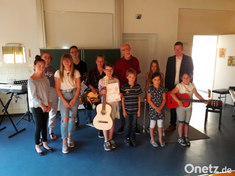 Ein sehr interessantes Programm bekamen die Zuhörer präsentiert, mit Stücken wie Menuett in G-Dur (J.S. Bach), Flamenco (H. Teuchert), He´s A Pirate (H. Zimmer), Menuett in a-moll (J. Krieger), The Entertainer (S. Joplin) und vielen anderen schönen Titeln. Die Schüler zeigten Ihr Gelerntes mit guten Leistungen und man merkte Ihnen die Freude beim Musizieren an. Mit schönen Klang und guter Technik spielten Sie auf Ihren Instrumenten. Geehrt wurde die Schülerin Lizzi Roth für das Junior 1 Abzeichen im Fach Gitarre. Am Ende waren alle Schüler mit Ihrem Lehrer Reinhard Mährländer sehr glücklich über das gelungene Vorspiel.