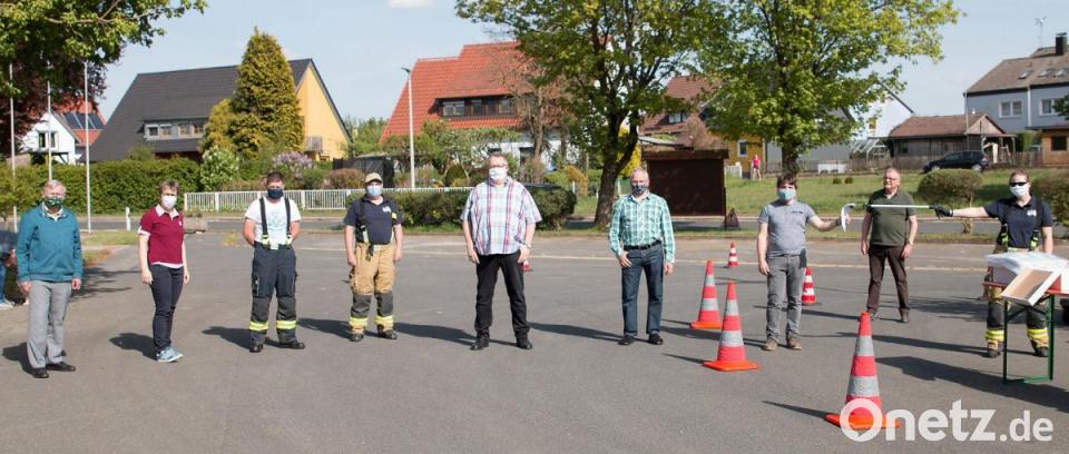 Dritter Bürgermeister Reinhard Naber (von links), Bürgermeisterin Marion Höcht, Kommandant Thomas Busch (Thumsenreuth), Kommandant Markus Krenkel (Krummennaab), SPD-Fraktionssprecher Wolfgang Bauer, FWG-Fraktionssprecher Rainer Schwingshandl, CSU-Fraktionssprecher Andreas Heinz, Zweiter Bürgermeister Herbert Mattes, Feuerwehrfrau und Gruppenführerin Michaela Adam.