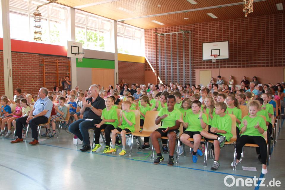 Theo Wunderer zeigte sein Talent an der Trompete mit "The sound of safed". Die gesamte 4. Klasse verabschiedete sich von Klassenleiter Wolfgang Schraml und allen Anwesenden mit dem Sporty Rap. Dazu schwangen die Mädchen Hulareifen und Springseile auf der Bühne, die Jungs kurvten mit Longboards durch die Halle. Bei Theos "Biene Maja" stimmten alle mit ein. Zum Abschluss der Show präsentierten Emily und Yvonne aus der vierten Klasse ihre Turnakrobatik auf der Bühen. Mit Flic-Flac, Handstand und Rädern unterhielten sie das Publikum.