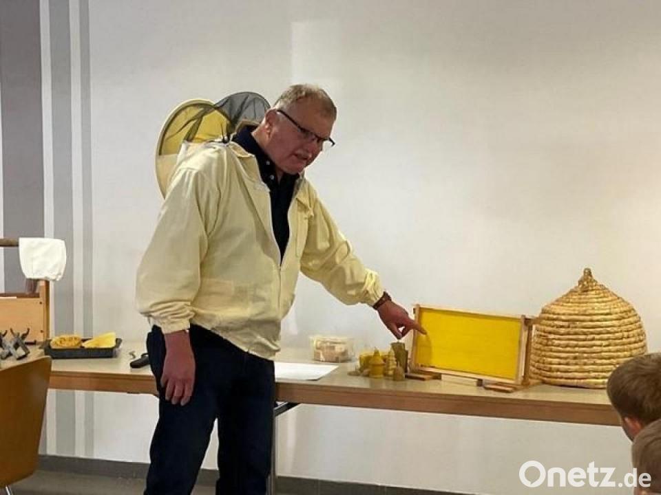 Ein besonderer Gast besuchte die beiden 1. Klassen der Grundschule Krummennaab. Nachdem im Unterricht die Wiesenpflanzen und -tiere Thema waren, nahmen die Schüler die Honigbiene genauer unter die Lupe. Ein Besuch von Imker Herbert Mattes und seiner Ehefrau machte das theoretische Wissen anschaulich und begreifbar. Er zeigte seine Schutzkleidung und Werkzeuge und erklärte kindgerecht, wozu die Gegenstände gebraucht werden, wie die Schule in einer Mitteilung schreibt. Sogar einen Bienenstock mit eingearbeiteten Schautafeln hatte der Experte besorgt. Einige Schülerinnen und Schüler durften selbst einen Imkerhut aufprobieren und aus einer frischen Wabe den klebrigen Honig probieren. Mattes erzählte von den vielen verschiedenen Aufgaben eines Imkers. Er müsse sich gut um seine derzeit knapp 20 Bienenvölker kümmern und sie auch auf Krankheiten untersuchen. Mit einer Lupe durften die Kinder die für Bienen gefährliche Varroamilbe betrachten. Zum Abschluss gab es für die Grundschüler noch eine besondere Leckerei: Die Buben und Mädchen durften frischen Honig auf Waffeln und Brot probieren.