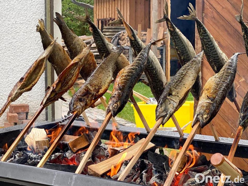 Auf seinem selbstgebauten Grill reihten sich am Sonntag die Makrelen und schmorrten langsam über der heißen Glut. Wie im oberbayrischen Raum setzt Schaumberger auf Hartholz wie Buche gemischt mit Erlenholz für einen gleichmäßigen Garprozess. Das Grillen über einem offenen Feuer verleiht dem Fisch eine besondere rauchige Note. Bei den Schaumbergers packt immer die ganze Familie mit an und so konnten die Abholgäste auch ihre süßen Gelüste mit leckeren Crêpes oder Erdbeerschokospießen besänftigen. Ob es dies in der Form nochmals gibt, kann Schaumberger jetzt noch nicht sagen. Der große Zuspruch aus der Bevölkerung lässt auf eine Wiederholung hoffen.