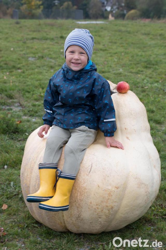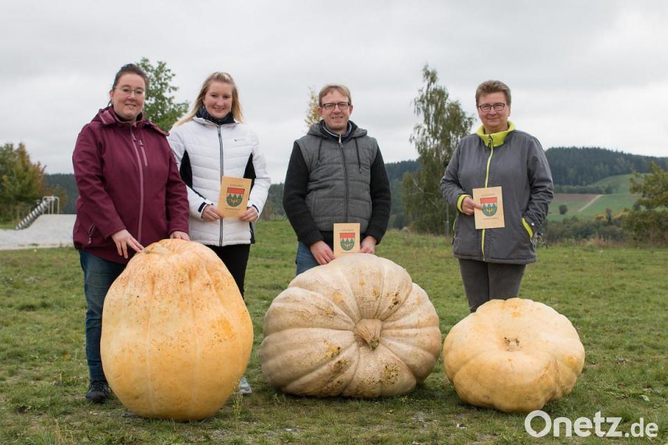 Den Siegerkürbis können Interessierte noch mehrere Tage vor dem Eingang des Premenreuther Kinderhauses bestaunen. Durch seine ungewöhnliche Form dient das Exemplar nun als Sitzbank und steht für spontane Fotos bereit.